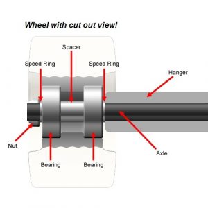 These spacers will suit most modern skate wheels but if in doubt please use verniers to check inside wheel width.
